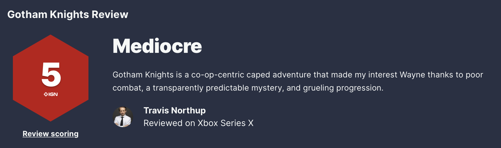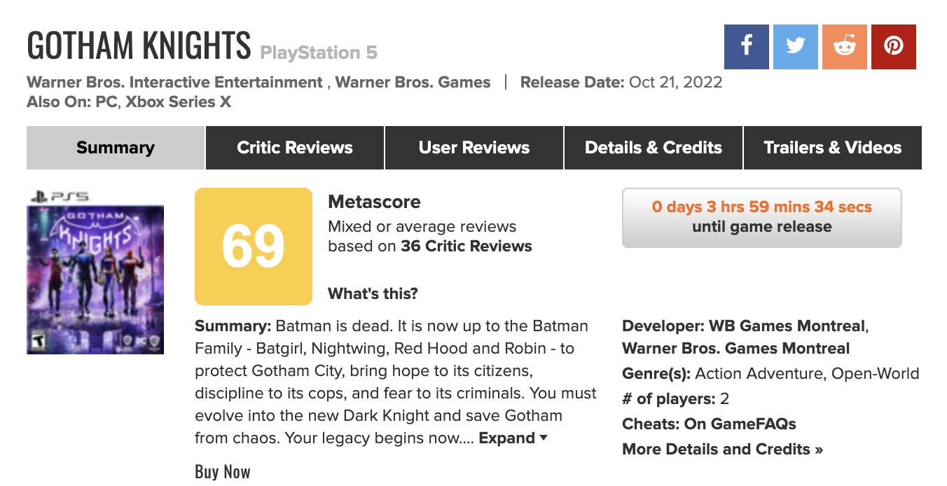 《哥谭骑士》媒体评分出炉,IGN5分,GameSpot4分