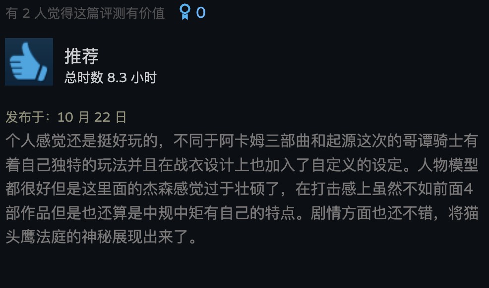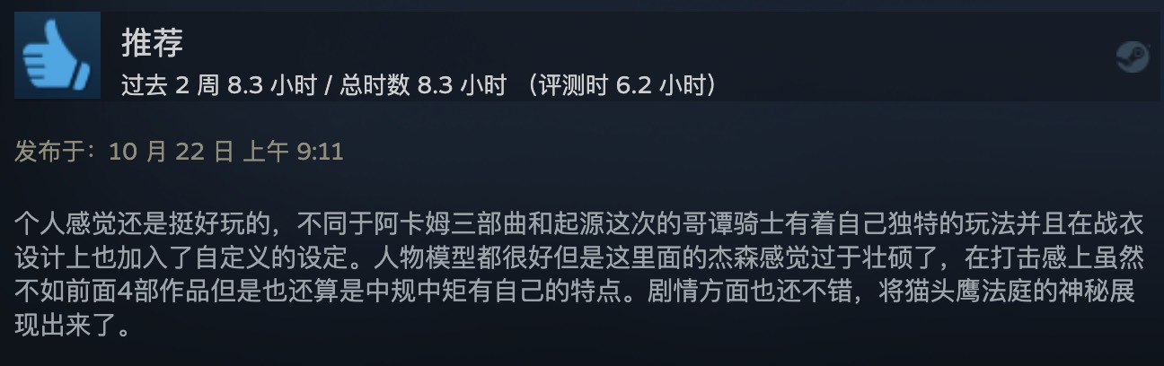 【《哥谭骑士》Steam评价“褒贬不一”,玩家评价优化稀烂】《哥谭骑士》已在今日正式上市,其目前在Steam平台玩家评价为“褒贬不一”,1131篇用户评测中获得61%好评。一部分玩家认为游戏玩法不错、建模也养眼,剧情上也能符合预期。但是大部分玩家并不认可本作的优化,卡顿问题非常严重,手感也没达到预期。对于本作有意向的同学不妨再观望一下。