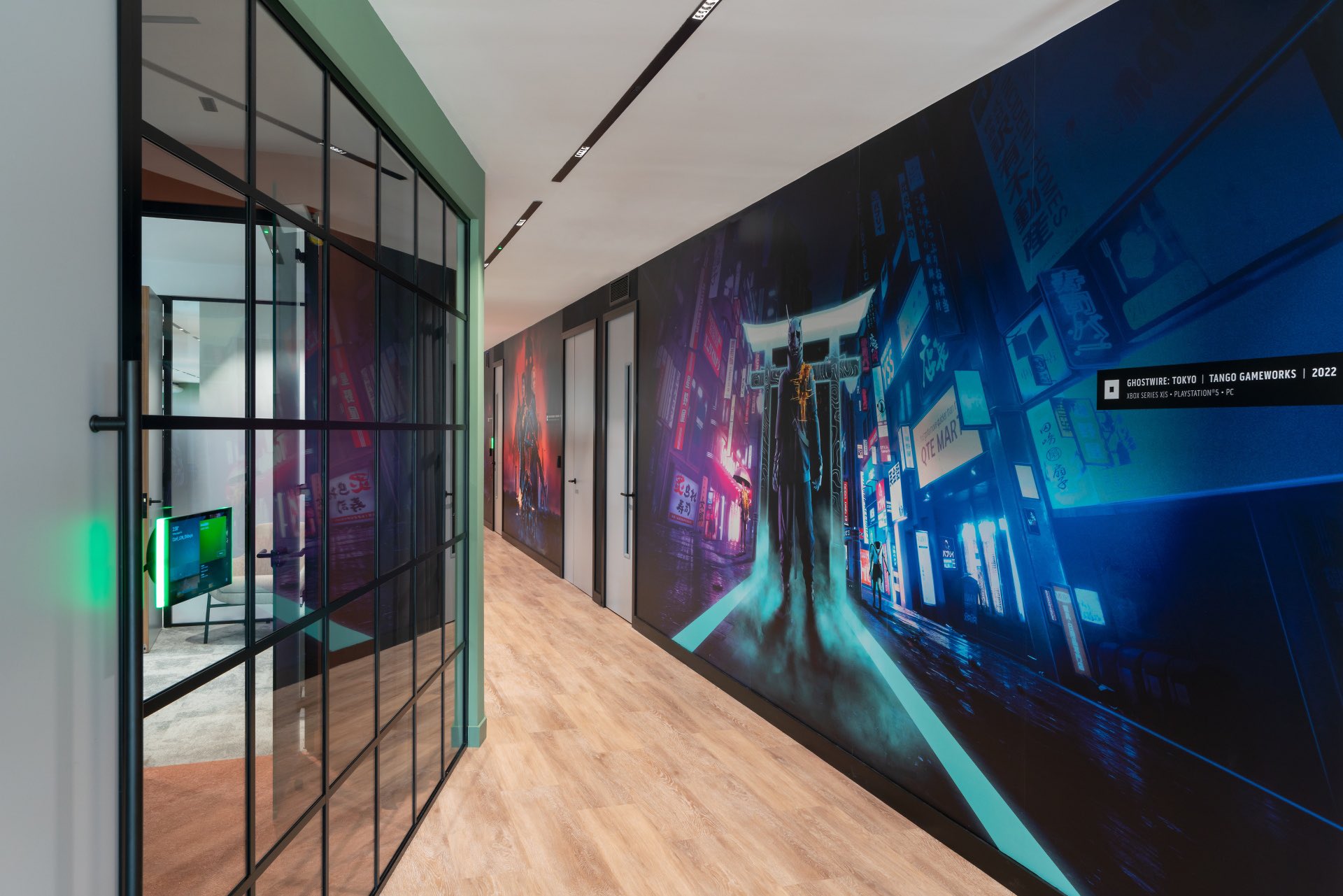 【《幽灵线:东京》或即将登陆Xbox平台】专为工作场所做设计的公司Area近日在其网站上发了一张他们为Bethesda伦敦办事处所设计的效果图,该照片中墙壁上《幽灵线:东京》宣传图赫然在目,并标示该游戏登陆Xbox Series X/S、PS5和PC平台。考虑到微软于今年3月收购了《幽灵线:东京》的发行商Bethesda,本作登陆Xbox平台也是顺理成章的事情,之前《死亡循环》与索尼一年独占期结束后已登陆Xbox,如果《幽灵线:东京》与索尼的独占协议也是一年的话,那么在2023年3月25日之后,我们很可能在Xbox平台看到这款作品。