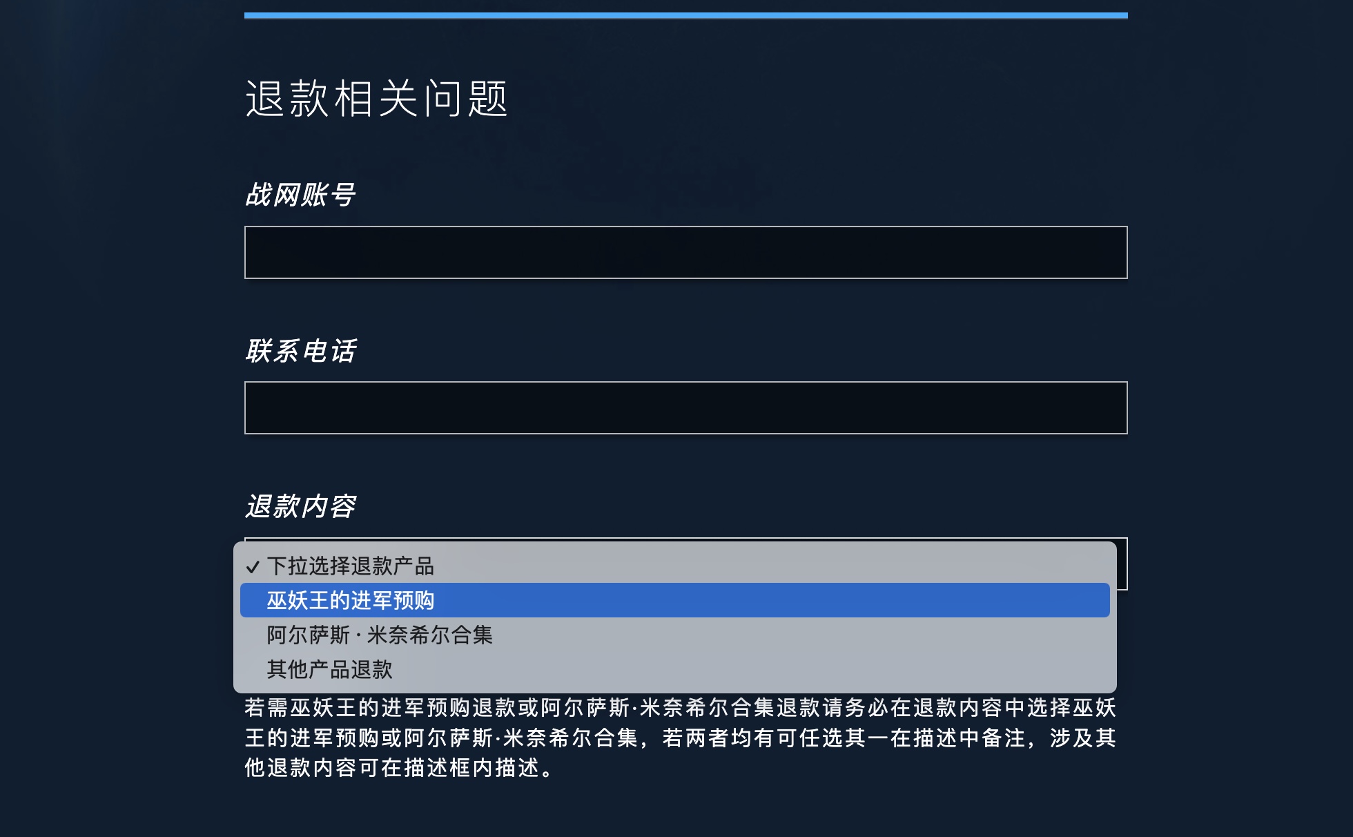 【网易暴雪宣布分道扬镳后,《炉石传说》率先开启退款通道】近日,由于网易与合作方暴雪娱乐的协议期限即将届满,《魔兽世界》《炉石传说》《守望先锋》等游戏即将停止运营。官方宣布将会开启上述游戏部分产品内容的一系列退款工作。而现在,《炉石传说》已经率先开启了退款通道。在官网的客户支持页面下,玩家已经可以在下拉菜单中选择退款“巫妖王的进军预购”、“阿尔萨斯·米奈希尔合集”两款产品,前者原本计划在12月7日上线。而在《炉石传说》之后,预计其他游戏的退款通道也将陆续开启。