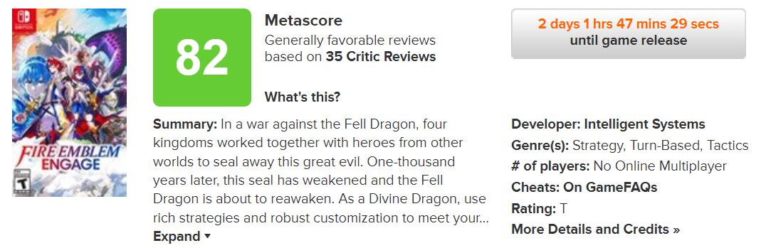《火焰纹章Engage》评分出炉,IGN 9分、GS 7分