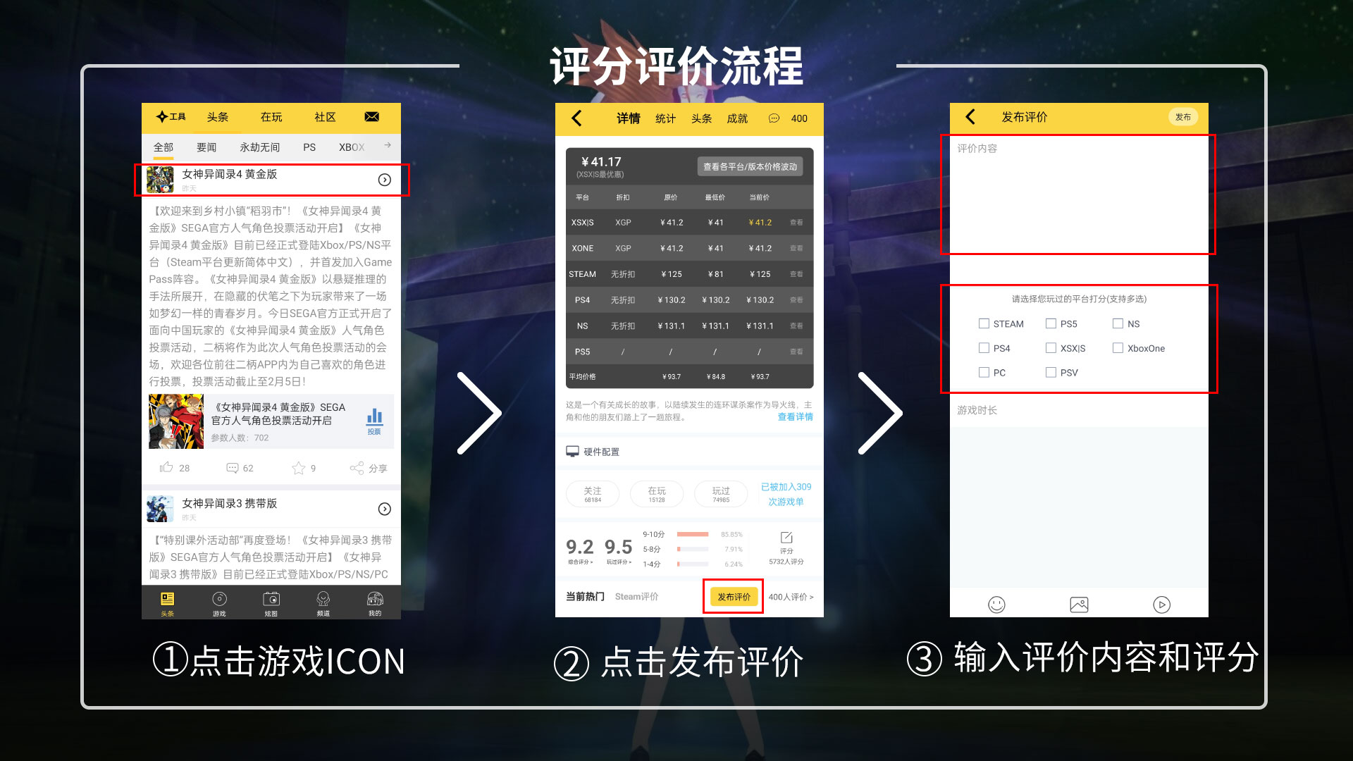 【给《P3P》&《P4G》打分并评价抽5张100元京东卡】经典日式RPG《女神异闻录3携带版》&《女神异闻录4黄金版》已正式登陆Xbox、PS、Switch和PC平台,并且加入Game Pass阵容,各位柄友喜欢这两款女神异闻录系列作品吗?游戏中的战斗、剧情、角色塑造等等是否令你感到满意?体验完游戏后,你对这两款人气作品又作何评价?欢迎大家在《女神异闻录3携带版》或《女神异闻录4黄金版》详情页写下自己的游玩体验,我们将从活动时间内所有同时完成新评分+发布新评价的玩家中抽取5名幸运玩家各赠送100元京东卡(注:只有去游戏详情页写游戏评价才可参与活动,无意义评价会被清除)