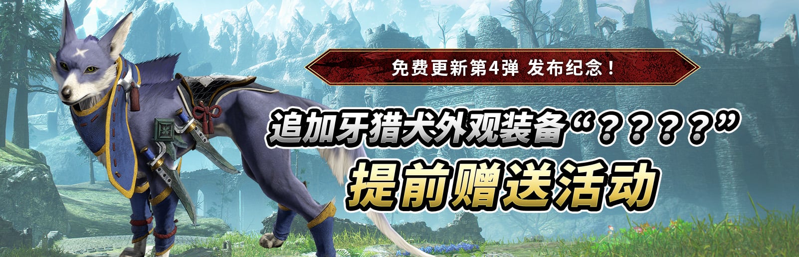 【《怪猎:曙光》发布免费第四弹更新纪念“牙猎犬外观装备”提前赠送活动】Capcom今日宣布,为纪念《怪物猎人崛起:曙光》免费更新第4弹的发布,决定举办特别赠送活动!玩家可在2023年2月2日(四) 9:00~ 2023年2月6日(一) 12:00期间在游戏官网上申请(需注册/登录CAPCOM ID),有关奖品“牙猎犬外观装备”的内容和获取方法将在2月2日播出的《怪猎曙光》特别节目中公开。届时还会有第四弹更新内容的具体解说,敬请期待!