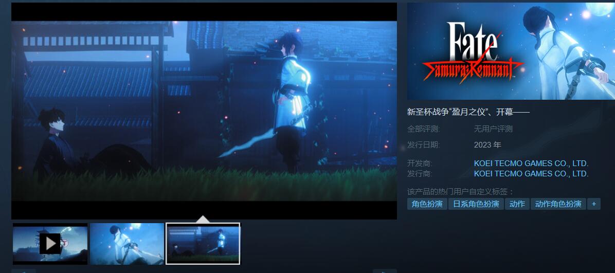 【《Fate/Samurai Remnant》上线Steam&PSN页面】新圣杯战争“盈月之仪”即将开幕,由TYPE-MOON和光荣特库摩联合所打造的“Fate”系列最新作《Fate/Samurai Remnant》现已上线Steam和PlayStation商城。本作是一款动作RPG游戏,将于2023年登录PS5/PS4/NS/Steam平台,支持中文。