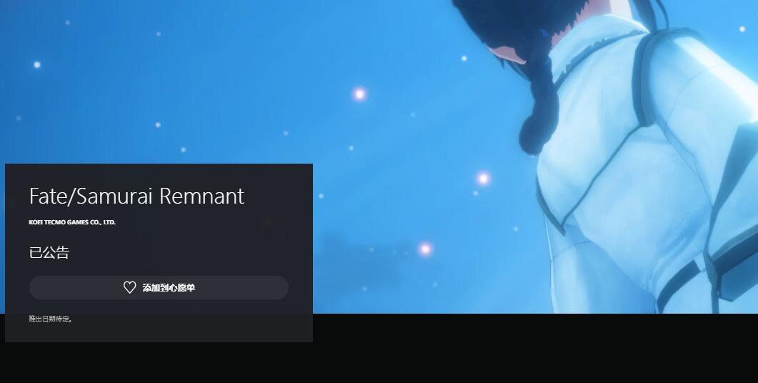 《Fate/Samurai Remnant》上线Steam&PSN页面