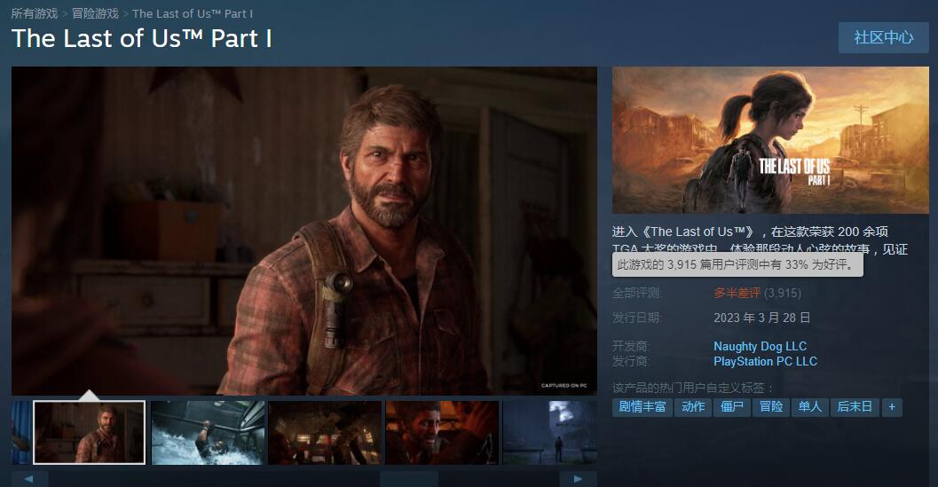 《最后生还者 第一部》Steam多半差评,官方已发文表示尽快解决