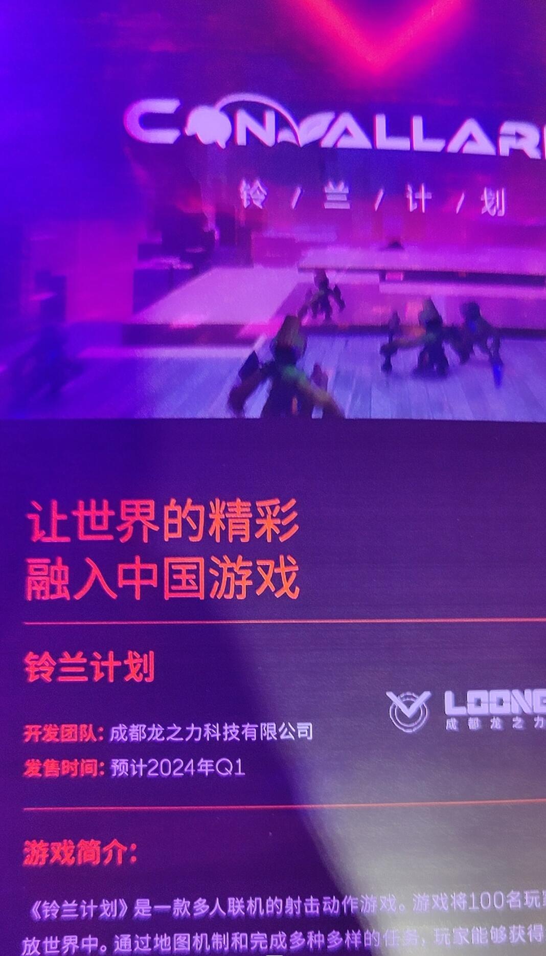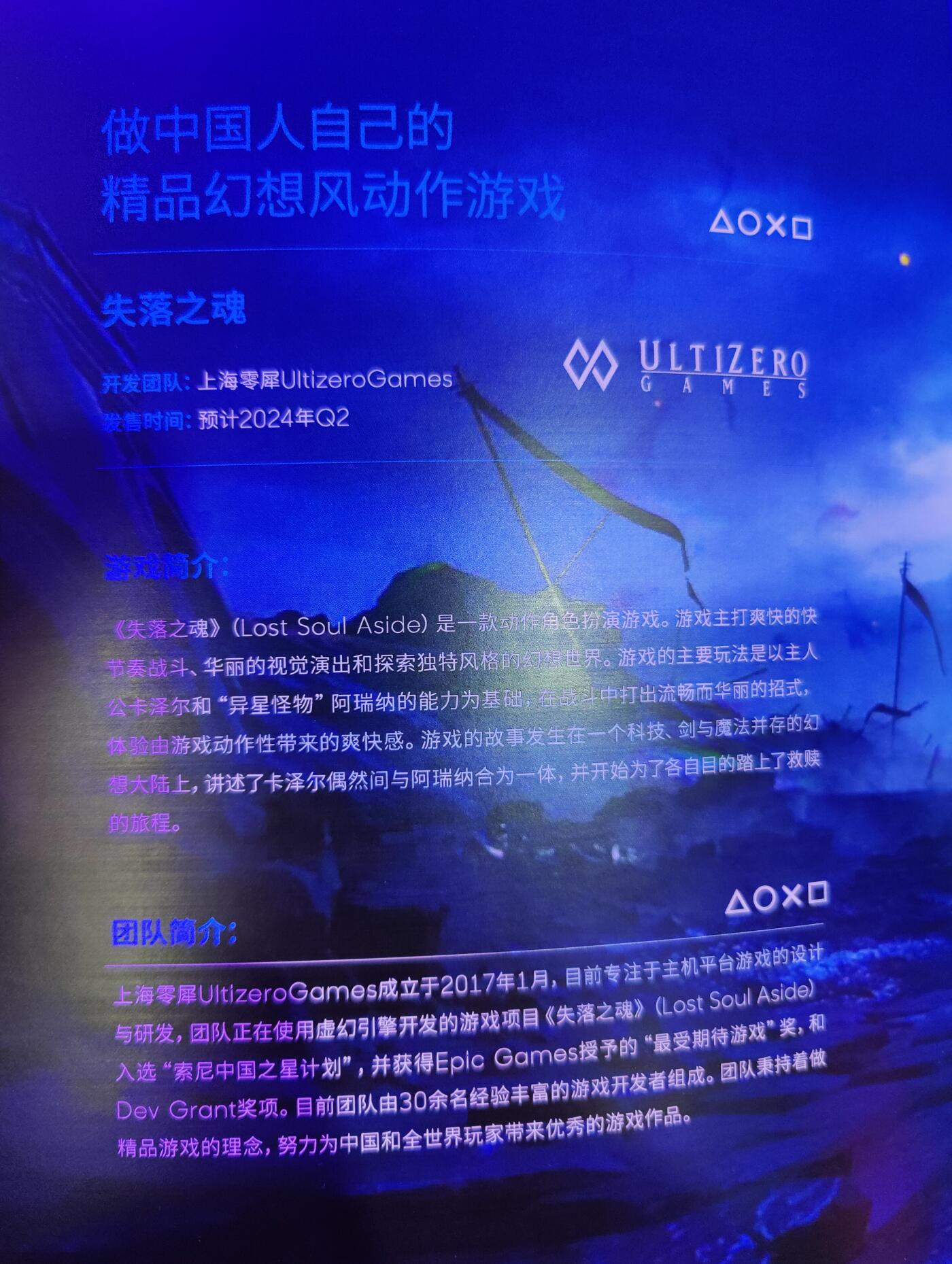【《失落之魂》《铃兰计划》等 “中国之星”作品发售日确认】在今日举行的SonyExpo 2023活动中,现场确认了“中国之星”其他几款作品的发售日: 精品幻想风动作游戏《失落之魂》:2024年Q2 多人联机射击动作游戏《铃兰计划》:2024年Q1 第三人称科幻题材黑客潜入游戏《演灭》:2023年Q3 动作RPG《无限机兵》:2024年Q1