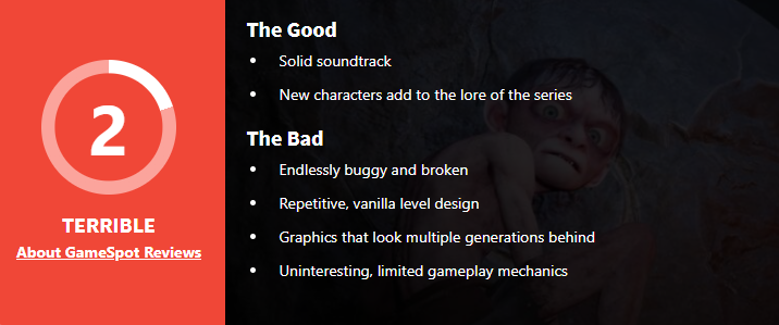 《魔戒:咕噜》获GameSpot 2分评价:与主角一样可怜之人必有可恨之处