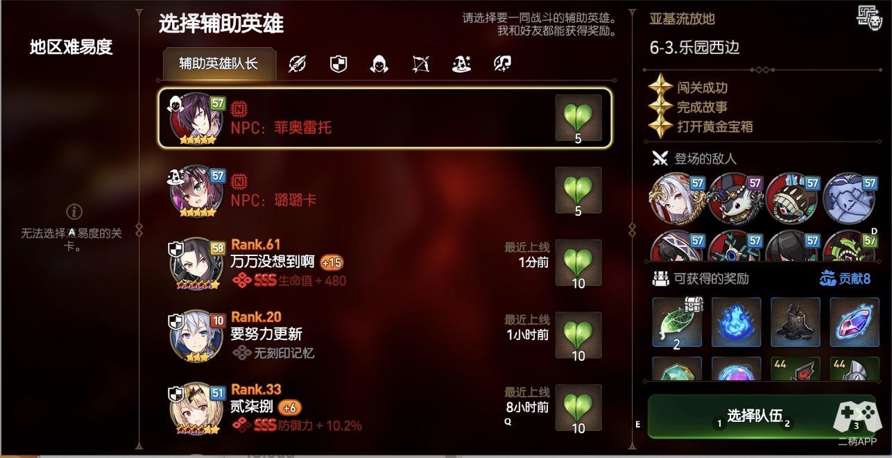 游戏将选关部分做到了极简,显然是把更多的预算投入到了作为核心的剧本构成、战斗系统刻画、立绘以及大魄力的过场动画上。在进入关卡后,玩家的移动仅局限于水平方向上的左右推进,只需要在屏幕偏左或偏右进行点按,角色便会向指定方向移动。在道路中你会遇敌进入战斗、开启宝箱或是在回复点恢复体力。每个关卡中会经历的战斗数量、会出现的敌人种类均在战斗前的预览处即给出了提示。