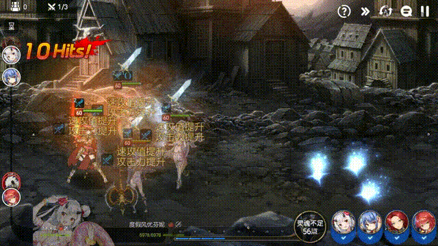 除了少数锁定使用角色的关卡,你可以从接近300位可选英雄中选取4位进行组队,在攻克所有敌人后即告通过关卡。游戏的战斗部分大体上采取了动态回合制游戏的经典构成,根据角色速度及游戏内技能效果决定了出招频率。游戏中存在“火焰-寒气-自然”及“光明-黑暗”两种独立的属性克制关系,每位英雄或敌人均有且只有其中一种属性。在属性之外各个角色还各自有独特的职业分配。在同时考虑敌我双方的属性及职业的前提下配置你的四个英雄成为了取胜之匙。在很多时候,四位英雄的位置配置可能也对战局会造成一定影响。如果再考虑到可于战斗中携带的宠物及神兽,以及英雄可以装配的装备、神器及技能,游戏在战斗层面的丰富度将更上一个台阶。尤其是游戏里的“加速值”在开场随机分配的理念,很容易让人联想到轨迹系列的战斗系统,让与动作类游戏相比略显沉闷的回合制作品散发出了紧张刺激的危险气氛。