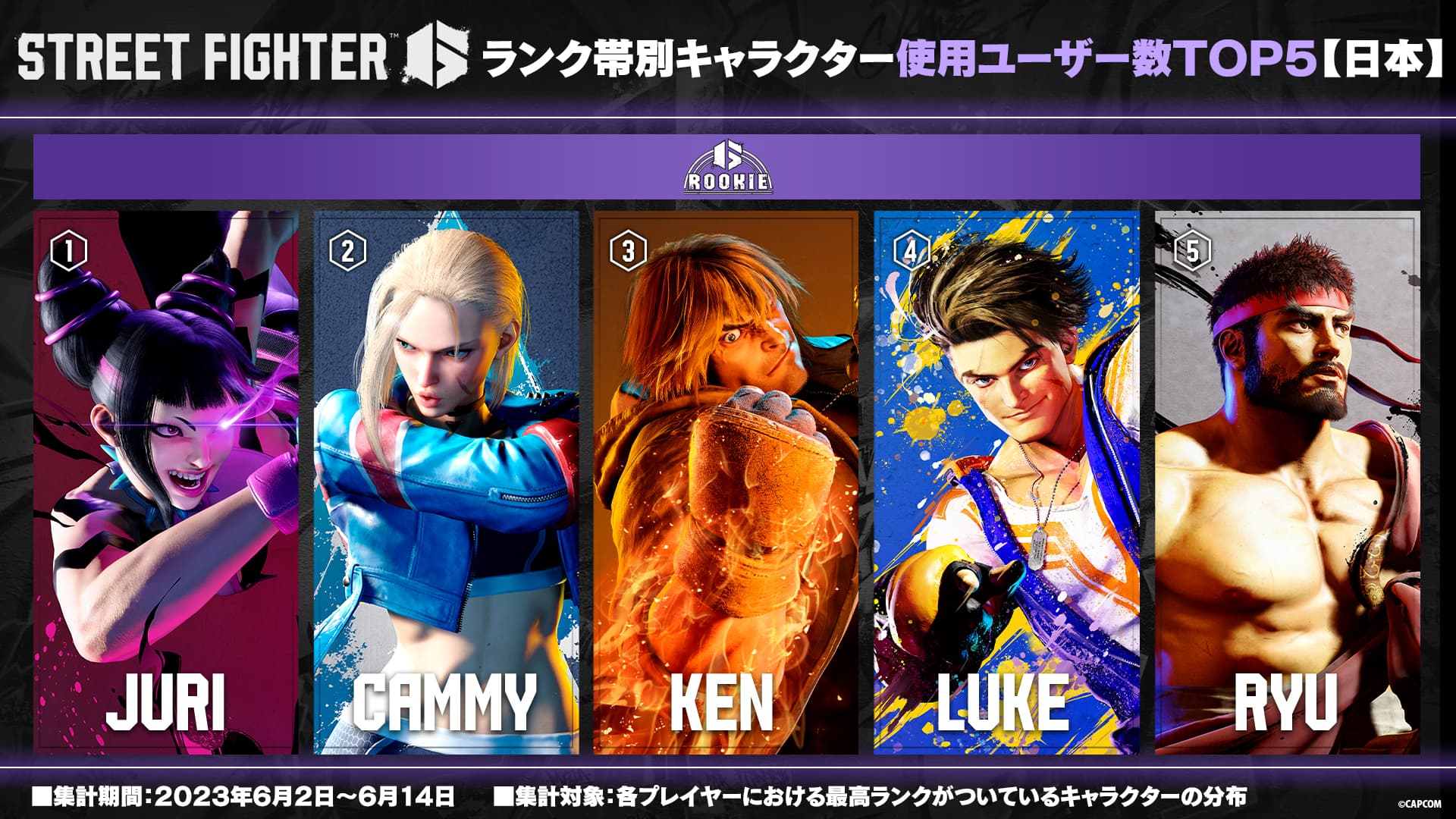 Capcom公布《街头霸王6》天梯角色玩家使用数排名