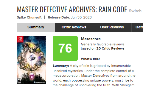 《超侦探事件薄:雾雨谜宫》MC均分76:值得弹丸粉丝们一试的新作
