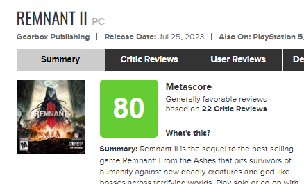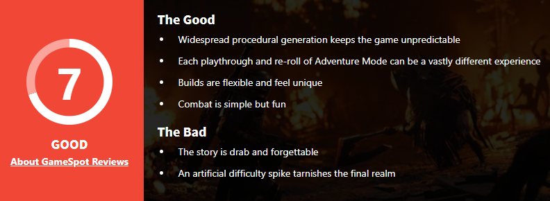 【《遗迹2》获IGN 9分、GS7分评价】由Gunfire Games所打造的《遗迹:灰烬重生》续作《遗迹2》媒体评测现已出炉,游戏目前MC上PC版均分80(22家媒体给出)、PS5版78(4家媒体给出),其中IGN为本作打出了9分,Gamespot则给出了7分评价。