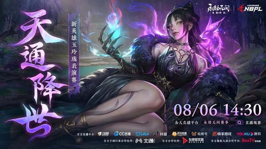 天通元君·玉玲珑即将上线,测试服表演赛今日打响! 永劫无间职业选手、人气主播、视频作者齐聚线下,提前带你了解新英雄实战表现。 想学习职业选手对新英雄的顶级理解?想沉浸式第一视角欣赏玉玲珑的操作? 今天下午14:30,锁定各大平台【永劫无间赛事】官方直播间,新英雄玉玲珑测试服表演赛等你来看!