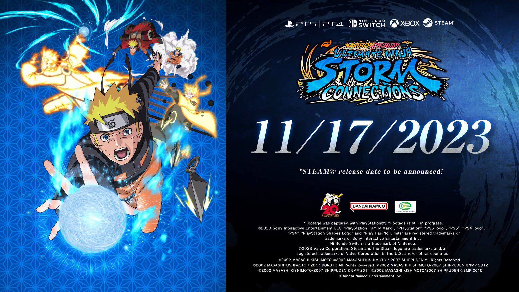 发行商万代和开发商CC2宣布,旗下《火影忍者》游戏系列最新作《火影忍者:终极风暴羁绊》将于11月17日在全球发售。日本地区的发售时间则为11月16日。游戏现已在PlayStation及Xbox平台开启预购,Switch及PC平台的预购将在晚些时候开放。游戏将登陆PS5,PS4,Xbox Series,Xbox One,Switch以及PC平台。