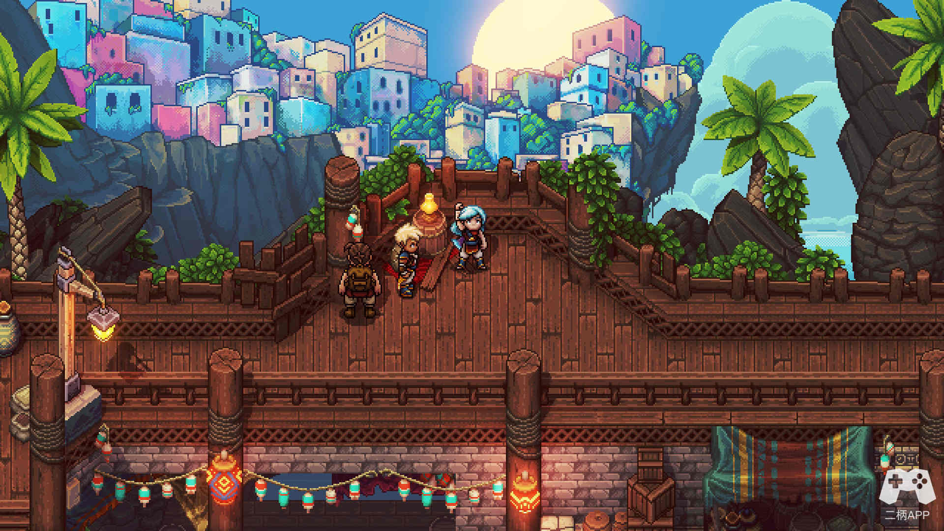 或许正如同游戏理论上的前作《信使》是一部致敬FC横版过关游戏的作品一样,在剧情内容上与《信使》处在同一个世界观的《星之海》也选择了以现代技术对经典游戏玩法与画风进行致敬。JRPG的选题及2D像素风的画面让人仿佛回到了20年前坐在电视机前投身另一个世界的时光里。随着技术的不断发展,代表游戏界顶尖画面的水准早已今非昔比。在大体量3A游戏里往往充斥着写实画风下以假乱真的人物建模。与之相比,20年前的游戏画风用现在的眼光来看,突出一个“简单”。既是多边形数量的简单,也是画面整体观感的简单。