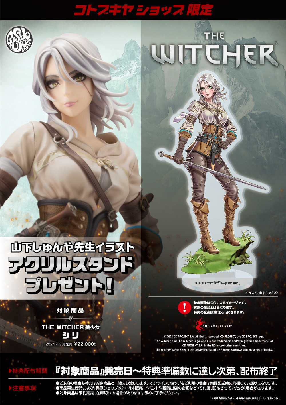 【《巫师》美少女系列手办第二弹“希里”接受预约中】此前我们曾报道过寿屋推出了旗下美少女(BISHOUJO)系列《巫师》“杰洛特”女性化的1/7手办。近日该系列第二弹作品“希里”也正式亮相,目前产品在接受预订中。和前作一样,此次也是以山下しゅんや所绘制的插画为基础制作而成,与女性化“杰洛特”放在一起还能再现出两人并肩作战时的经典场面。第二弹“希里”手办全高222mm左右(包括底座),售价22000日元(约1100元),预计2024年3月出货。