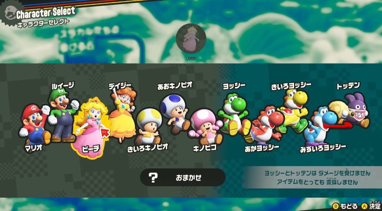 2、可玩角色多达12名,其中耀西和偷天兔不会受伤(手残福音,但是不能吃强化道具,掉沟依旧会死) 。