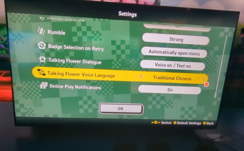 【《超级马力欧兄弟:惊奇》“闲聊花花”支持中文配音】在此前的直面会中,任天堂公布了《超级马力欧兄弟:惊奇》的诸多新情报,其中就包括本作新增可以和马力欧们说话的“闲聊花花”。他会说各种的话来让玩家的冒险变得更加热闹,有时会藏在意想不到的地方,所以关卡中的角落也不妨探索一下。媒体GameXplain近日发布了一则线下体验视频,从中可以看到本作中的“闲聊花花”支持中文配音。游戏中其配音可以选择开/关,且在语言选项中能看到繁简中文的对应。不仅如此,作为时隔多年到来的2D横版经典马力欧最新作,此次在菜单里也提供了多种选项。该视频中还可以看到如“震动调节”“在线玩家通知(开/关)”“重试时选择徽章”以及“动作指南”等人性化功能。《超级马力欧兄弟:惊奇》将于2023年10月20日登录NS,支持任亏券兑换。