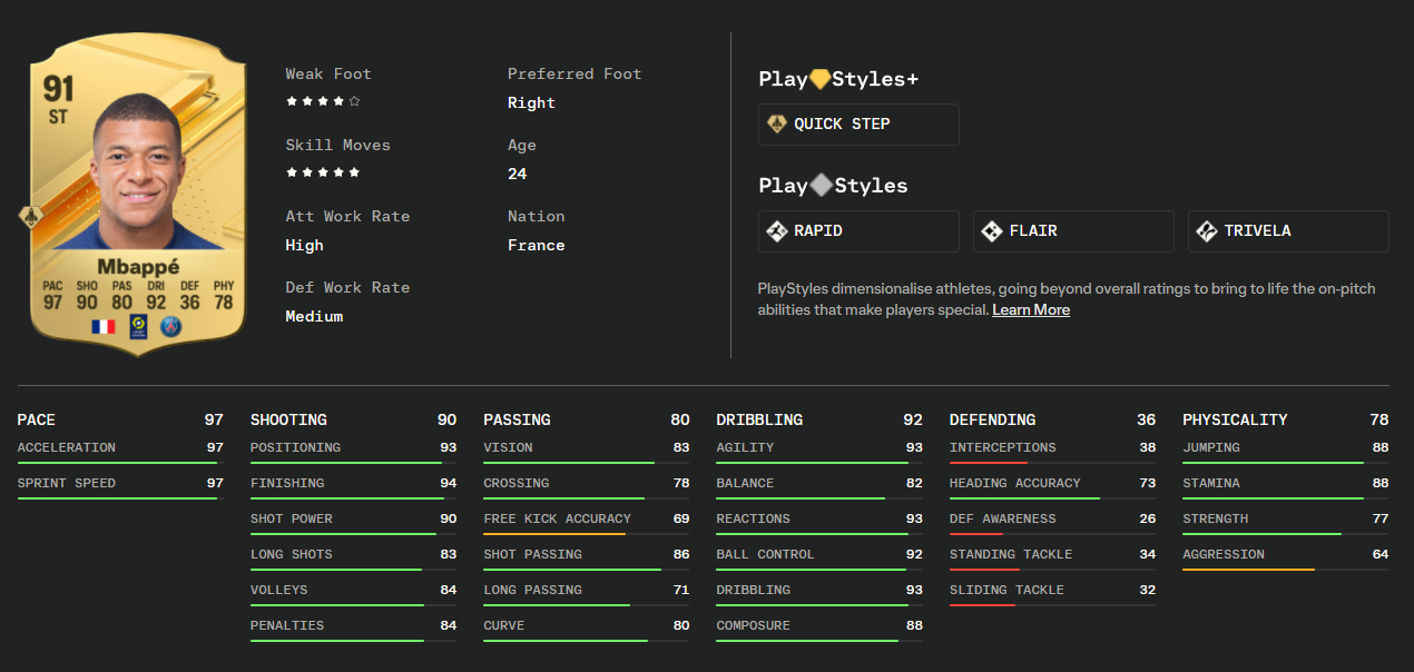 【《SPORTS FC 24》姆巴佩、哈兰德等24位高分球员名单公布】EA今日公布了新作《SPORTS FC 24》中24位高分球员名单,其中有四位选手以91分的评价排于首位,完整名单会在9月16日公布。《SPORTS FC 24》将于9月29日登录PS5、PS4、Xbox Series X/S、Xbox One、PC以及NS平台,以下具体: