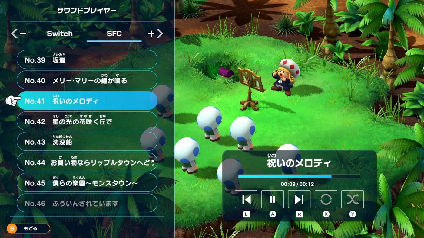 2.玩家可以自己选择播放超任版本的原始BGM或Switch版本的BGM。在游戏通关后可以使用“声音播放器”随时再次聆听。当然也有一些BGM处于隐藏状态,需要玩家在游戏中解锁。