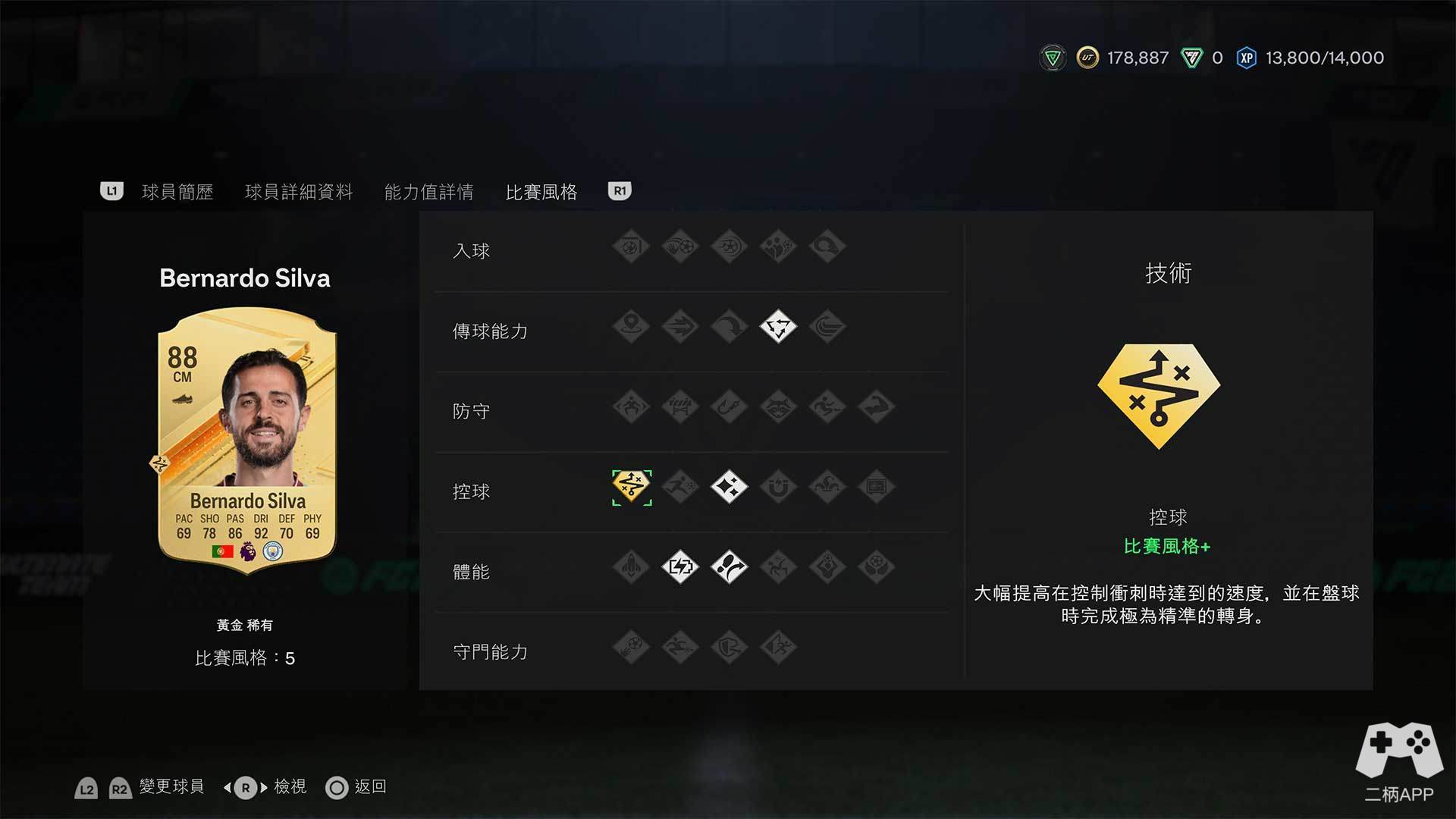 (而在球员详情界面,你则可以仔细研究他所携带的各种风格)
