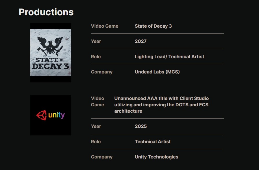 【传闻《腐烂国度3》计划于2027年发布】两年前,开发商Undead Labs发布了一则展示《腐烂国度3》的预告片,但随后关于该游戏的消息便一直寥寥。直到最近有细心玩家发现在Undead Labs负责照明设计和特殊视觉效果的Nora Shramek在其领英界面上,透露《腐烂国度3》将于2027年发布。当然这一消息并没有得到官方证实,而Nora Shramek也在随后将其从领英页面中删除。但如果《腐烂国度3》真的在2027年发布,也就意味着玩家们将在2018年的《腐烂国度2》之后,需要等待将近十年。