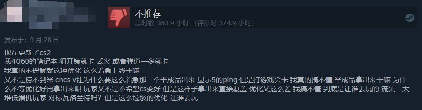 《CS2》玩家评价降为“褒贬不一”