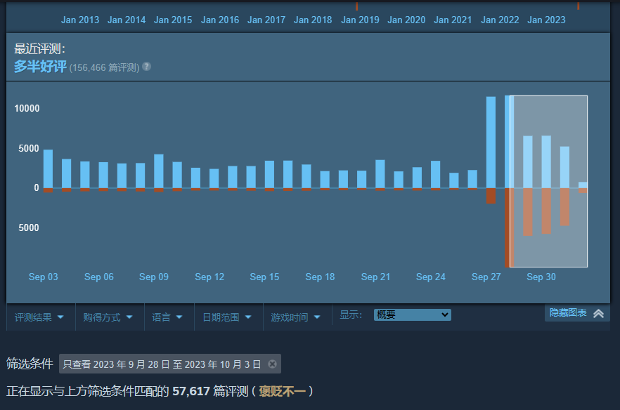【《CS2》玩家评价降为“褒贬不一”】作为《CS GO》无缝升级的新作,《CS2》可谓是风头无两,在线玩家峰值数高达147万,但在玩家口碑上却出现了不同的评论。自更新(9月28日)以来,《CS2》收获了57617篇评价,总体评价为“褒贬不一”,其中差评集中在:画面优化问题、直接覆盖更新,没有考虑《CSGO》玩家等。在更新《CS2》之前,《CSGO》的评价为“特别好评”,最高同时在线人数为181万。