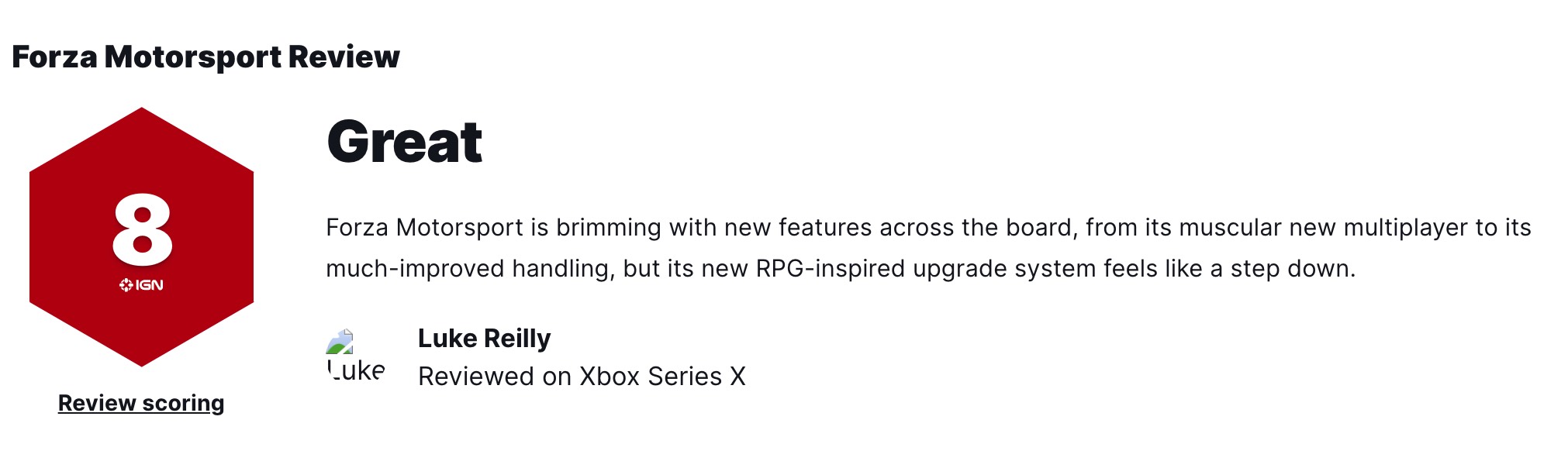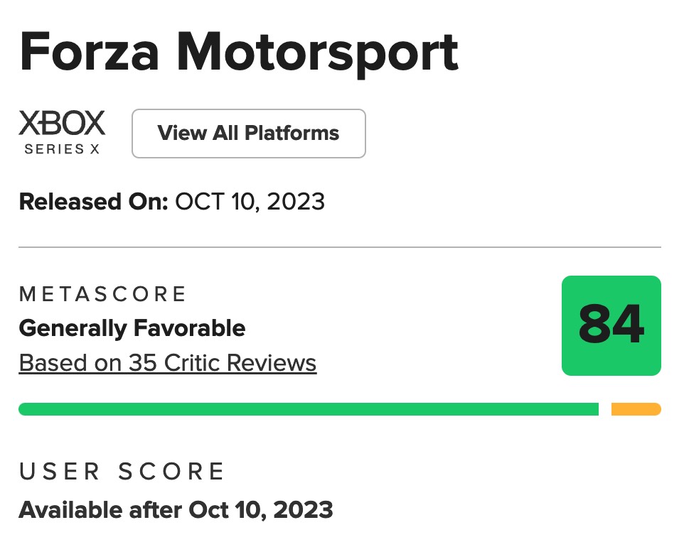 《极限竞速8》获IGN8分/GS9分评价,MC均分84