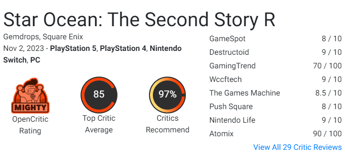 《星之海洋:第二故事R》MC均分86,获Gamespot 8分评价