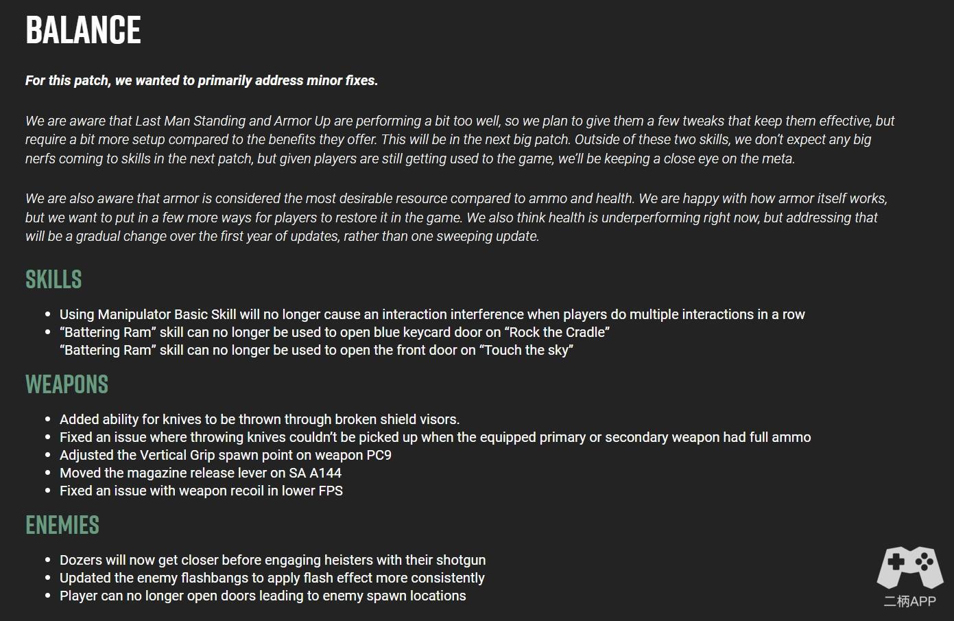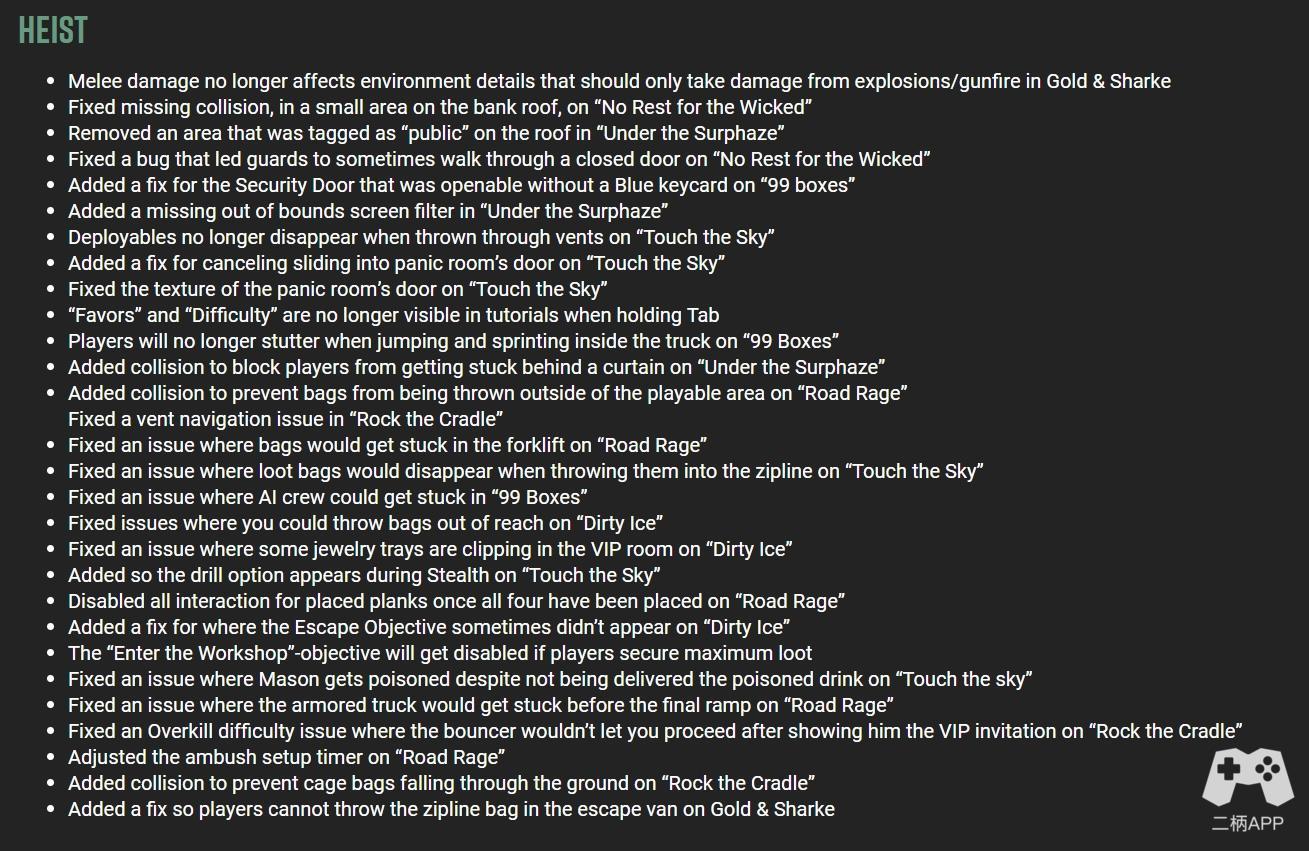 目前的1.01版本拥有2GB(PC版本)的体量,包含了大量的改进,从音频、视觉、平衡到UI、劫案等。