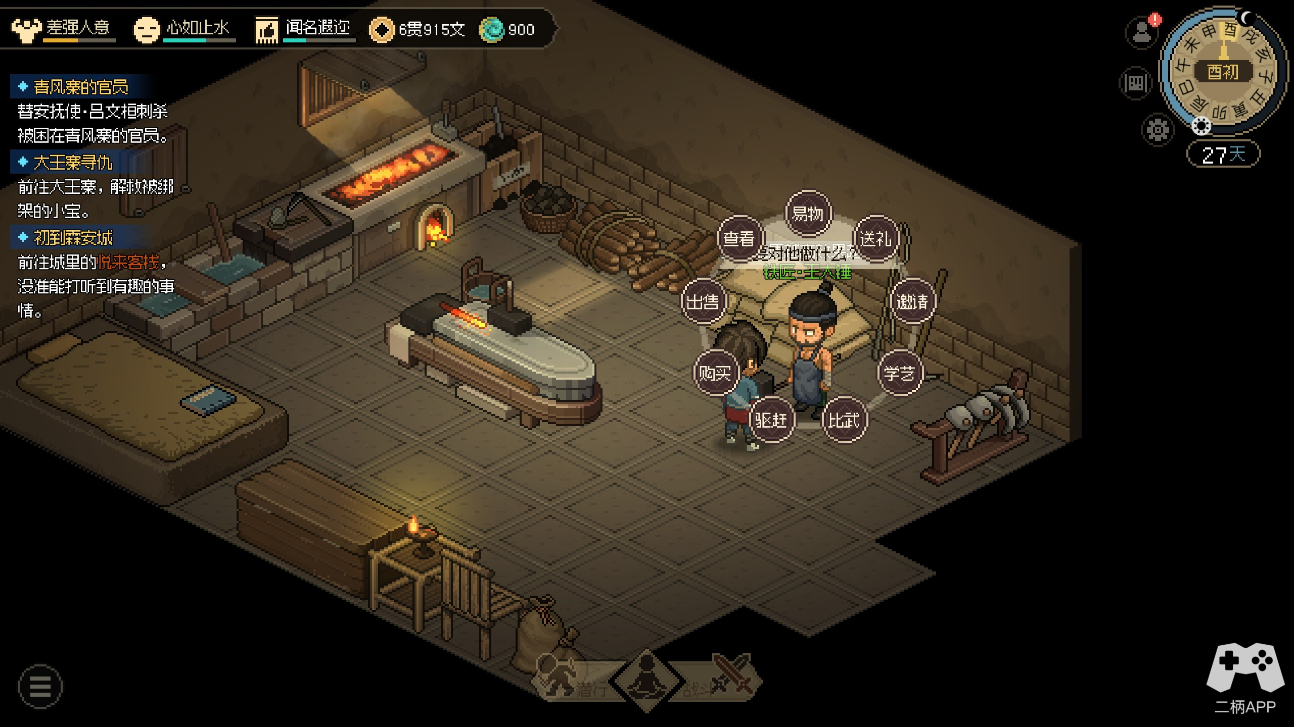 《大侠立志传:碧血丹心》是一款武侠像素版“江湖生存模拟器”,玩家将扮演一个初出茅庐的市井小人物,在江湖中摸爬滚打、体验多样身份,最终脱颖而出。