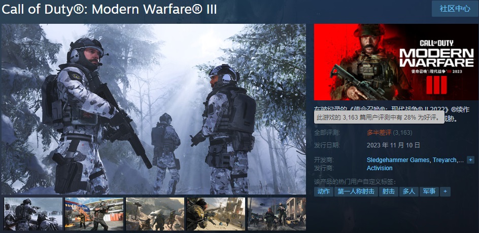 “年度最烂竞争激烈”《COD:MW3》MC用户评分仅1.4,媒体评价系列最差