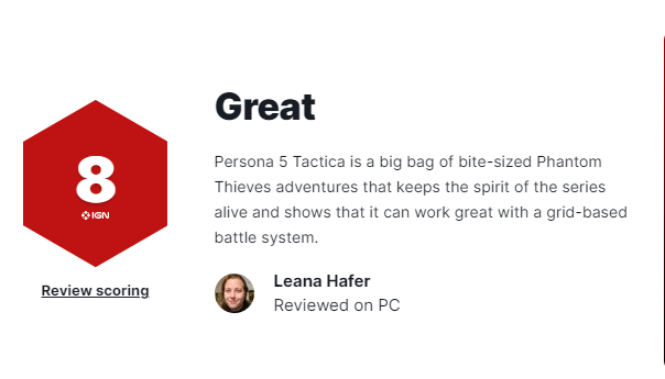 《女神异闻录5:战略版》MC均分78,获IGN和GS双8分评价