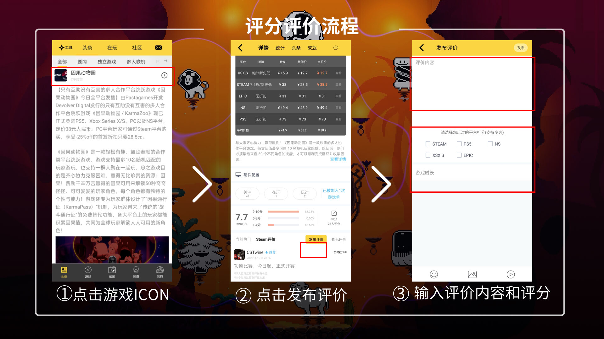 【给《因果动物园》打分并评价抽5张100元京东卡】多人合作平台跳跃游戏《因果动物园》昨日已正式登陆PS5、Xbox Series X/S、PC以及NS平台,各位柄友的联机体验如何?你觉得此游戏的合作闯关机制、关卡设计以及多人体验与你体验过的多人独立游戏有何不同?欢迎大家在《因果动物园》详情页写下自己的游玩体验,我们将从活动时间内所有同时完成新评分+发布新评价的玩家中抽取5名幸运玩家赠送100元京东卡(注:在此条资讯底下发表评价不算参加活动,只有按照下图一去游戏详情页评分评价才算)