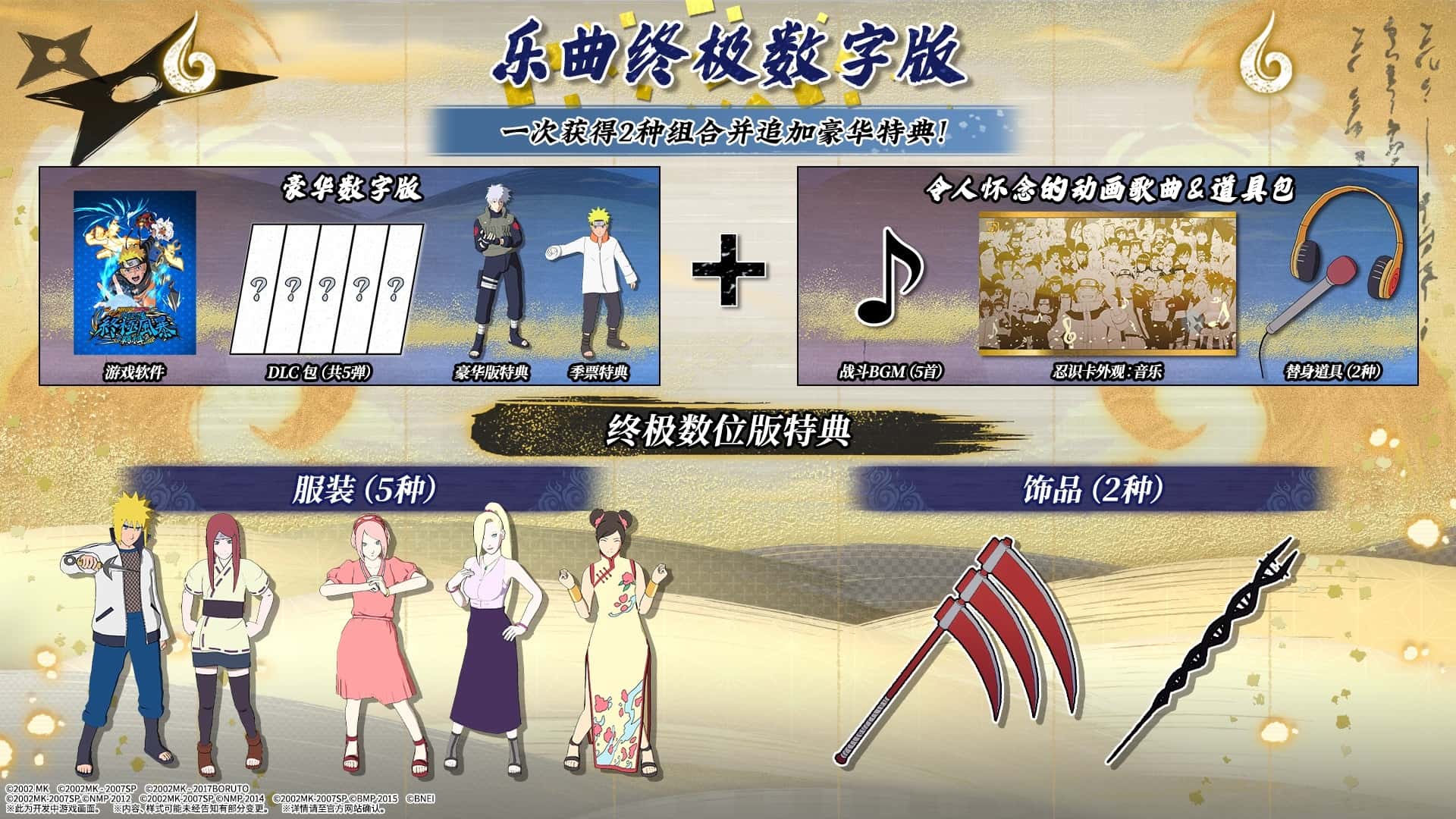 【《火影忍者:终极风暴羁绊》今日上市,官方公布游戏上市宣传片】火影20周年纪念作《火影忍者:终极风暴羁绊》现已正式登录PS5/PS4/NS/Xbox Series/Xbox One平台(Steam版明日推出),官方今日公布了本作的上市宣传视频。本作拥有130多名可控角色,除了原作剧情外还收录了新世代的特殊故事。游戏提供实体版(提供首发特典)、实体限定版(附带多种纪念周边)、乐曲终极数字版、豪华数字版可选。在拓展内容上有着季票(共5弹)和令人怀念的动画歌曲&道具包等内容。