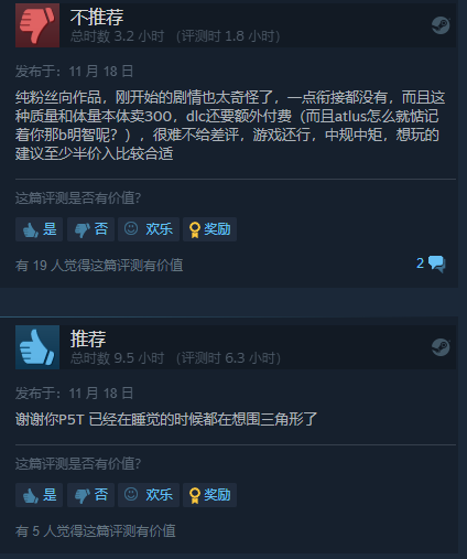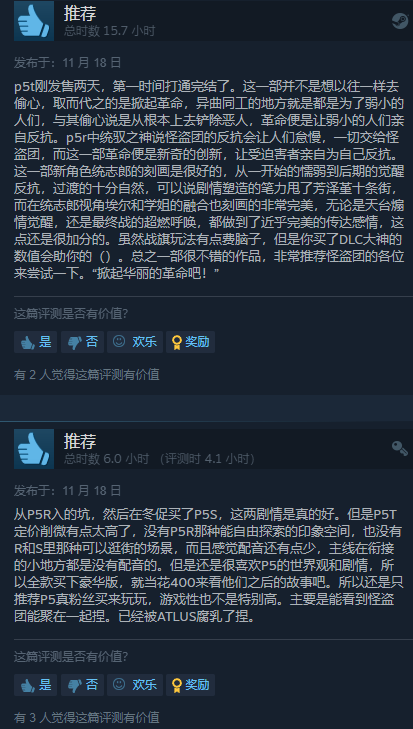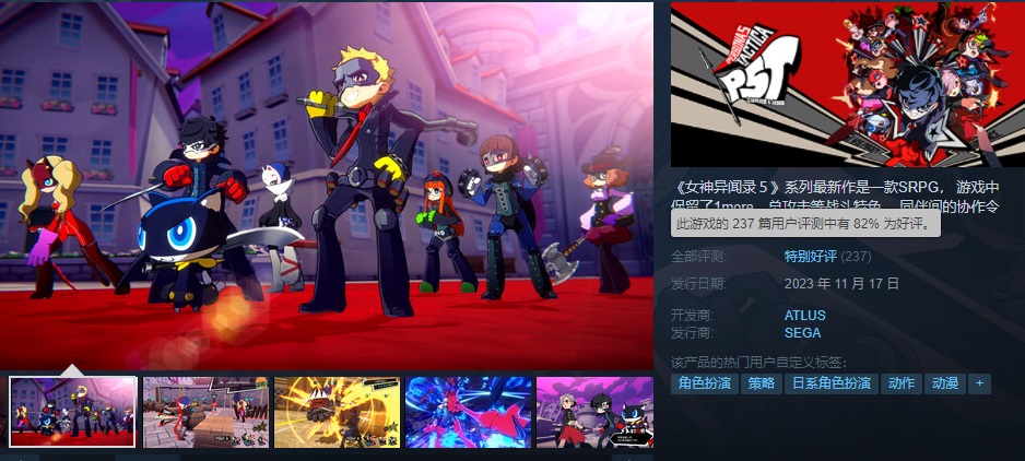《女神异闻录5:战略版》Steam上获玩家“特别好评”