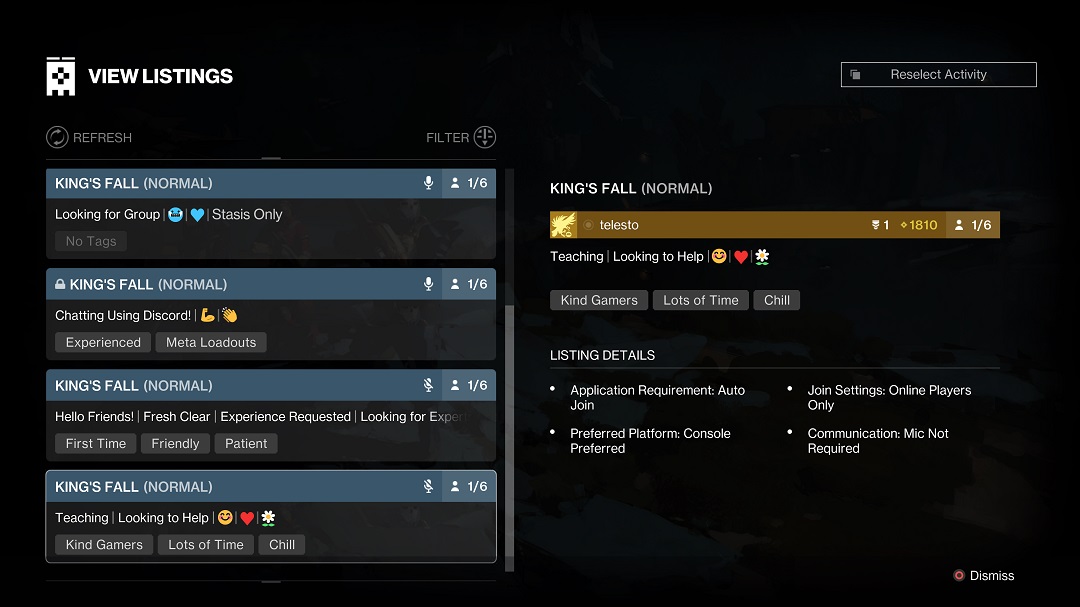 “火力战队搜索器”是为玩家匹配队友而在游戏内置的“寻找队伍”工具。玩家可以通过导航器的“名单”选项卡或利用每个活动启动界面上的“火力战队搜索器”接入点这两种方式,来搜索火力战队或者利用一系列选项创建名录,以明确你想要组建的队伍。此外,游戏内外的火力战队搜索器准备好以前,网站和同伴应用程序都将继续使用。官方表示一直在努力开发与游戏内系统完全一致的全新游戏外火力战队搜索器,不过早期测试期间不会推出这一功能。