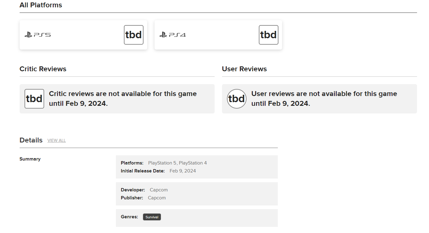 【MC评分网站出现《生化危机4:重制黄金版》页面,或明年2月推出】评分聚合网站Metacritic近日出现了《生化危机4:重制版》黄金版的页面。根据上面所提供的内容显示,游戏将于2024年2月9日发售,平台为PS5/PS4。目前Capcom还尚未公布过与此相关的情报,若信息属实的话,黄金版或许会在游戏标准版的基础上附带《生化危机4:重制版》DLC物品以及王阿姨的拓展内容“分道扬镳”。