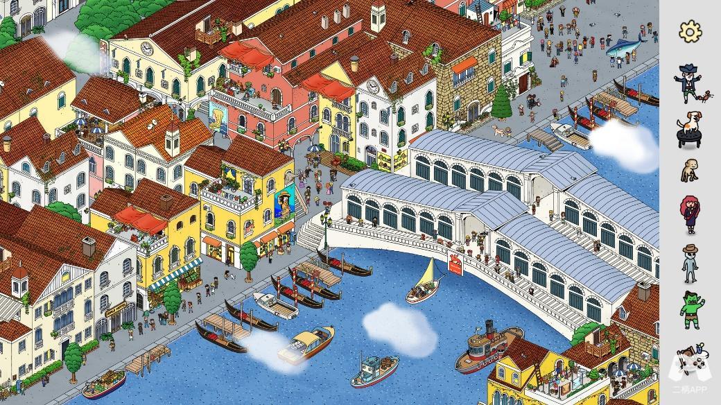 随着苏菲亚的脚步,你将在10个手绘场景中开展迷人的寻物冒险,数百个原创人物和物品等你发现,他们都有自己专属的动画和可爱的配音。而超大的手绘地图更是令人惊叹,Memo Gogo工作室力图通过每一条运河、每一个桥梁和小巷,在游戏中重现欧洲城市的魅力。随着游戏的推进与玩家观察技能的提升,你将发现自己已沉浸于威尼斯浪漫的城市古韵之中。