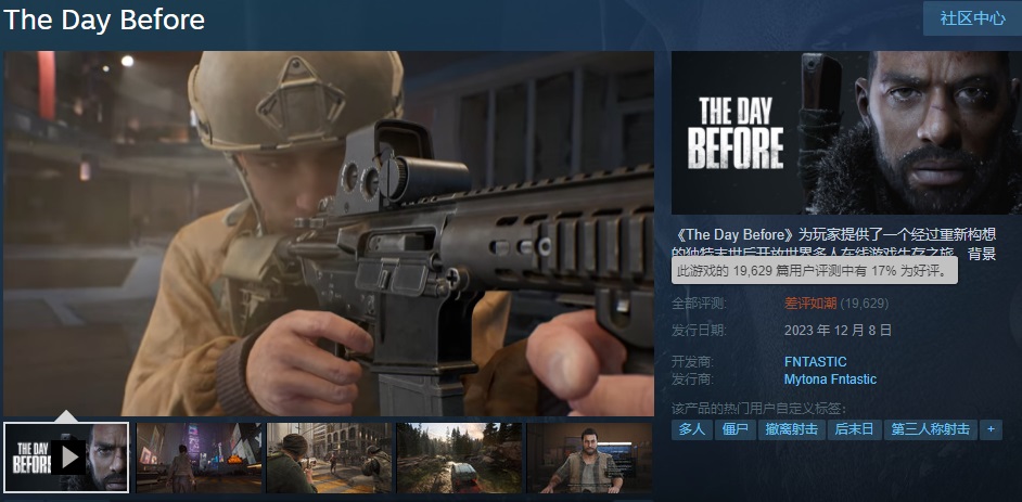 《浩劫前夕》之前就因为商标、延期以及抄袭等问题备受争议。加上官方也没有给出本作销量等相关数据,游戏内容也与其宣传的开放世界生存要素不符。故此次快速倒闭的做法更进一步地加深了玩家们认为这就是“一场骗局”的看法。目前游戏在Steam上有着19629篇评测,好评率仅为17%。