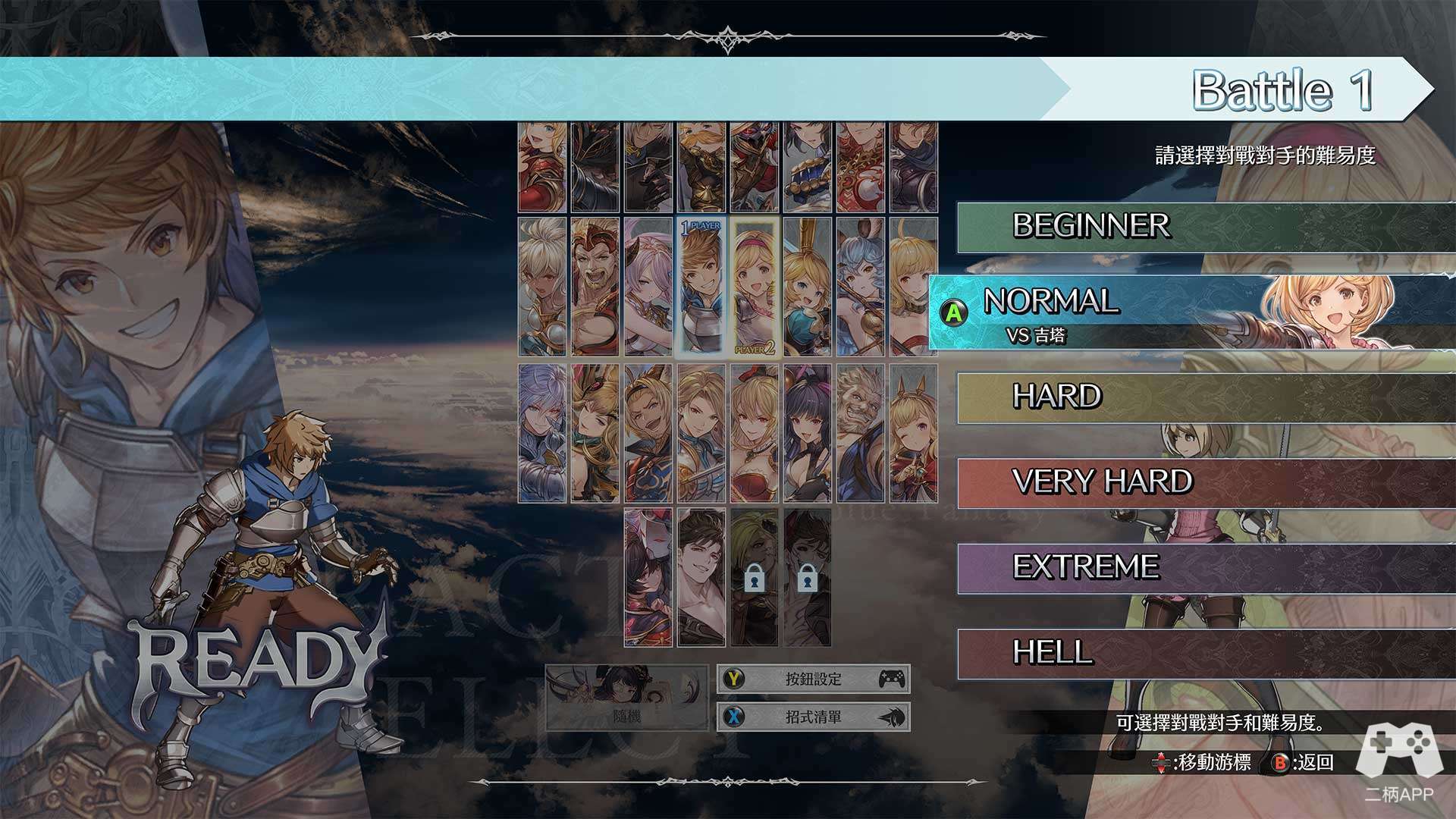 格斗游戏粗略可分为两类,一类是以《街霸》《铁拳》为代表,一板一眼见招拆招的硬朗派;另一类则以《大乱斗》为代表,讲究广阔空间下的高自由度动态战斗。从类型上看二者并无绝对意义上的难度区分,而《碧蓝幻想 Versus Rising》严格来说应该归于后者。精致而广阔的对战地图,尽管是2D横版却在水平和上下间让角色纵横跳跃。在使用这种凸显原作美型画风的玩法基础上,简化的指令操作则让游戏上手难度骤降,对于初级玩家而言,只要掌握最基础的攻击与跳跃,以及依靠复合按键触发的两种特殊技能(剧情模式独有),再加上极限槽满后释放的极限技,便可充分享受对战的乐趣。6个档位的难易度使得即使是第一次游玩格斗类游戏的玩家也能够轻易挑战电脑,沉浸在空之物语当中。