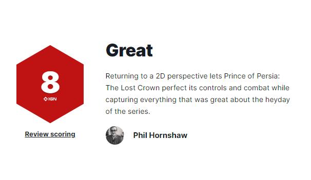 IGN:《波斯王子:失落的王冠》作为一款“银河城”游戏,他在平台跳跃和战斗这两个要素上的表现较为出色。游戏在体现《时之砂》等作魅力的同时,通过2D视角将系列3D游戏中存在的问题解决。它如传统的类银河城作品一样优秀,整体体验十分流畅。但是在剧情方面上有点不尽如人意,不少地方都未给予解释(不知是否隐藏在高难任务或收集品中),让人感觉非常混乱。此外,有些小角色的语音并不是真人所配,虽然育碧表示会在下个月通过更新替换,但显然不在首发补丁之中。