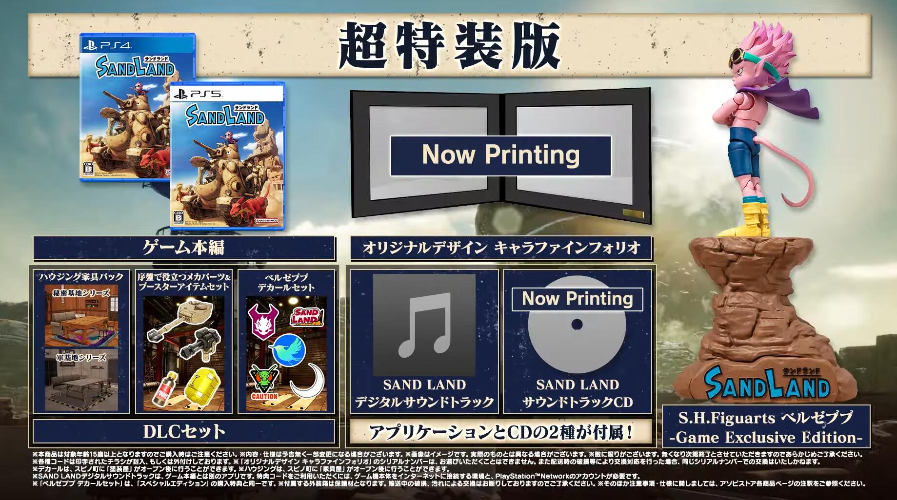 【鸟山明漫改游戏新作《SAND LAND》4月25日发售,最新预告片公布】万代南梦宫今日公布了《SAND LAND》(沙漠大冒险)的发售日预告,本作将于2024年4月25日登录PS5/PS4/Xbox Series平台。《SAND LAND》是由鸟山明同名短篇漫画改编而成,是一款动作ARPG游戏。除了普通版和特别版外,还有超特装版可供玩家选择,其中附带游戏本体、原声带以及贝尔杰布的S.H.Figuarts系列手办等内容。以下为本作在各平台上的表现情况(推荐容量PS518GB,其余20GB):