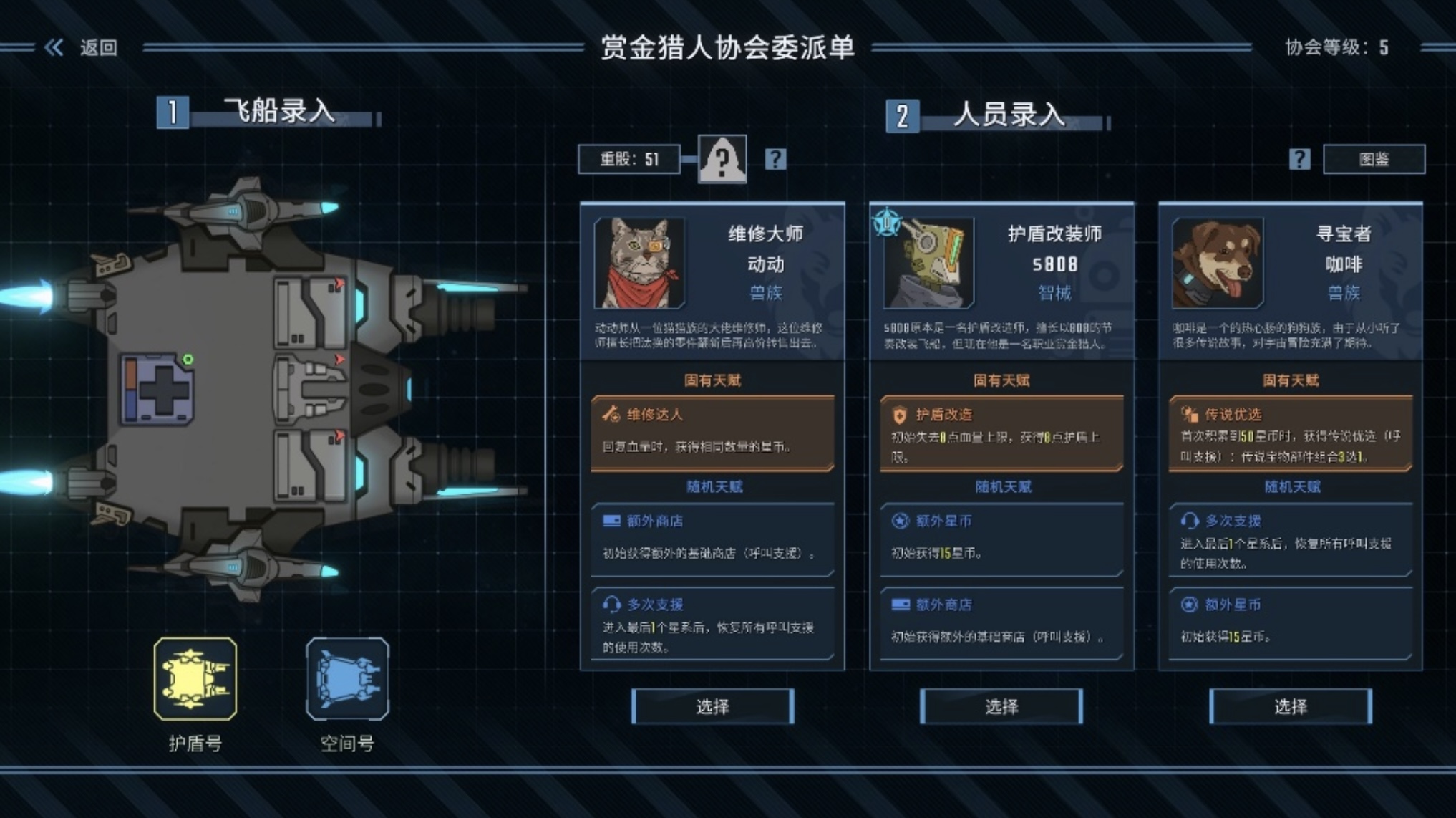 当然,作为《孤星猎人》的绝对主角,飞船才是整个构筑玩法的基石。虽然都是在3×3的格子里摆放攻击部件与辅助部件以获得最佳攻击力,但护盾号与空间号仍提供了两种截然不同的玩法与策略:
