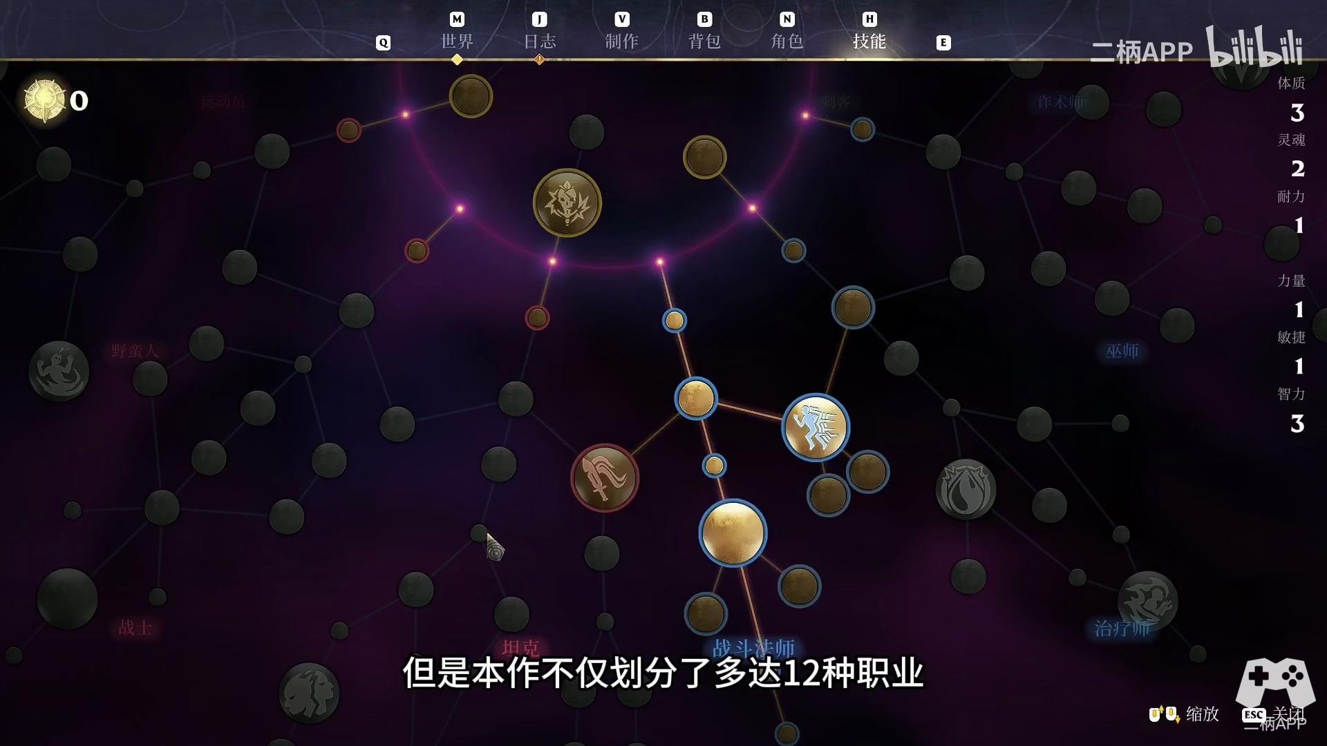 在大部分的生存游戏中,往往是没有职业这个概念的。但是本作不仅划分了多达12种职业,还没有对职业的选择做出限制。游戏中的职业系统大体可以分为战士、法师和游侠三种,其中战士又衍生出坦克、运动员、野蛮人等细分职业,法师则有巫师、治疗师、诈术师等,游侠则有刺客、驯兽师和幸存者等。而且,只要你的技能点足够,想点哪个分支就点哪个分支,并不会出现点了战士分支就不能再点法师技能的情况。