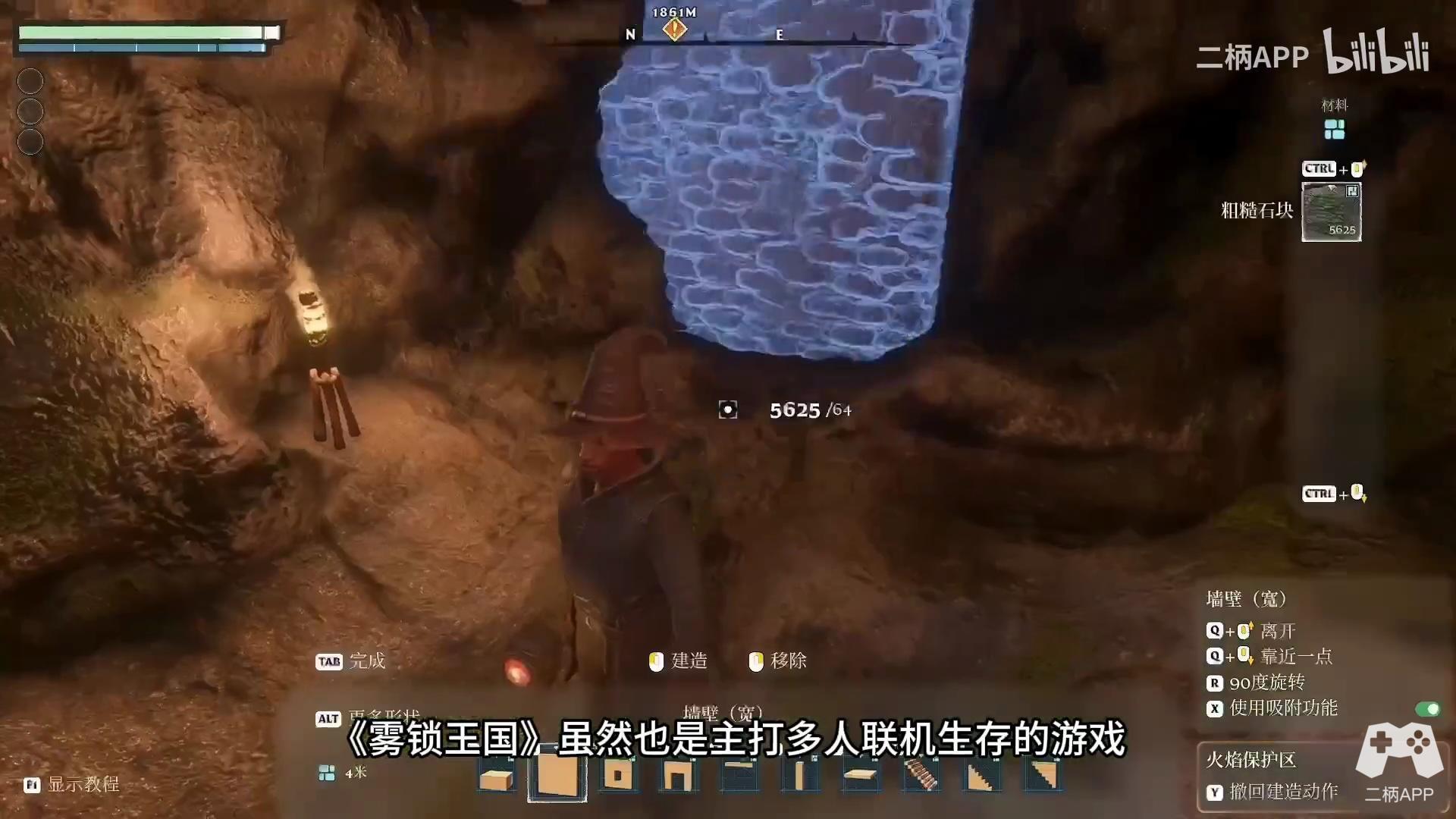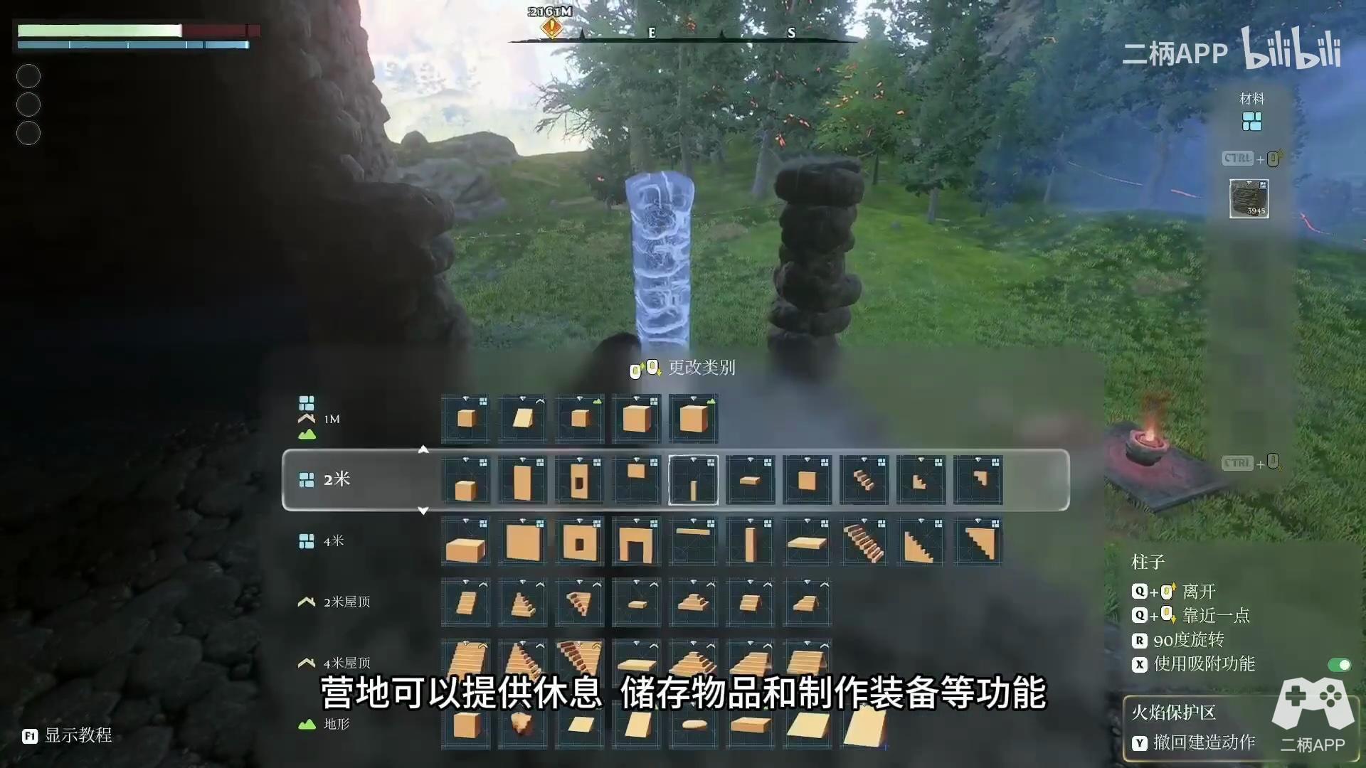 除了探索和战斗,玩家还可以在游戏中建造自己的营地。营地可以提供休息、储存物品和制作装备等功能。这里就不得不提游戏另外一点和《幻兽帕鲁》大不相同的,就是《雾锁王国》有着更高自由度和精细化的建造系统。游戏的建造模式提供了47种不同的结构模型预设,涵盖了坡道、楼梯、屋顶、平面、门框、立柱等等常见结构,并提供精细化调整。