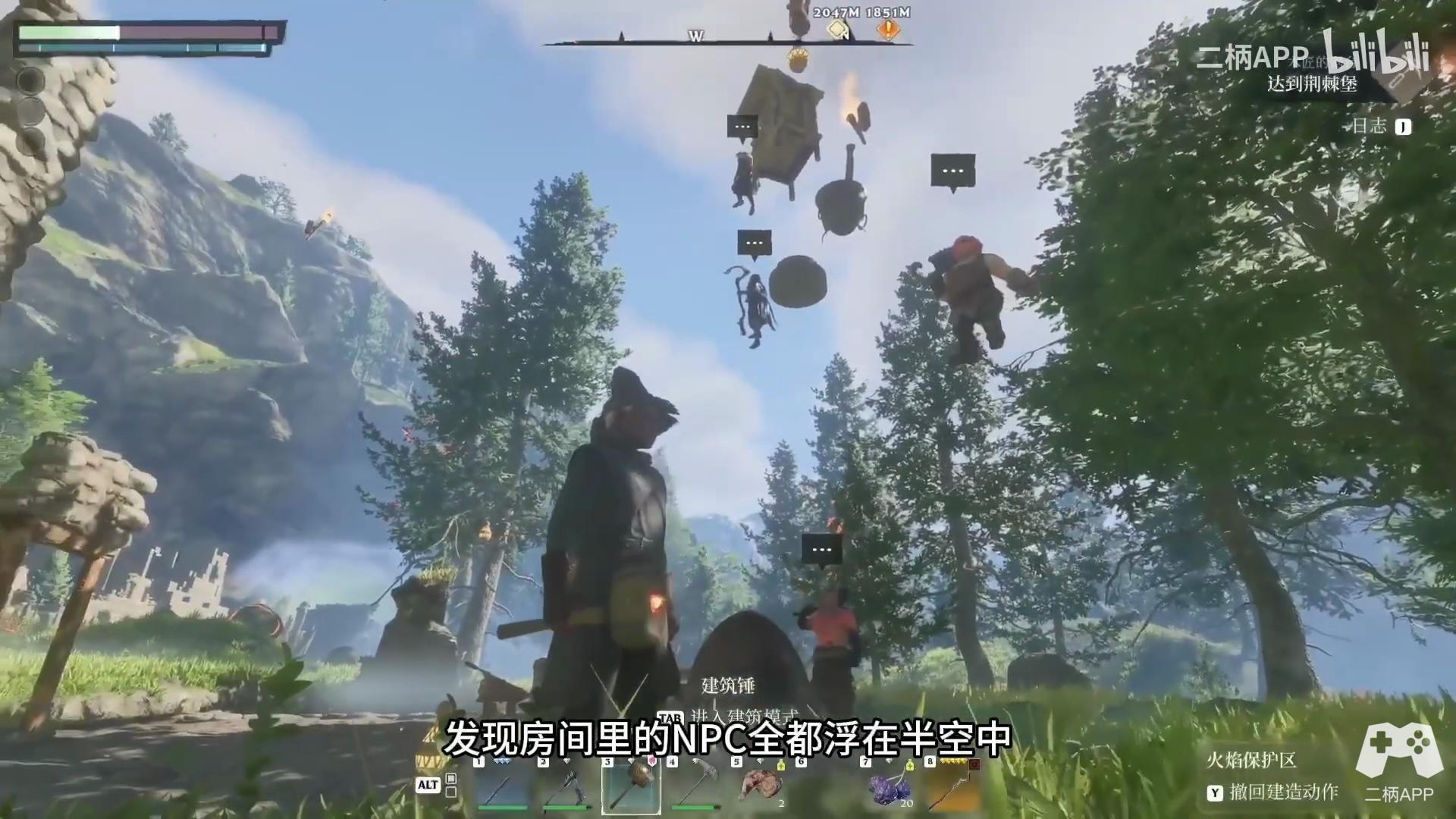 还有一点值得一提的,就是本作中的建造模式并不受限于基本的物理体系,即便是造出来的建筑没有任何支撑,也能安然立于平地。笔者已经可以想象游戏发售后,玩家自己创造的那些天马行空奇形怪状的建筑了。当然,这一设定带来的后果就是,当我想要拆除原来的房间造一个新的时,发现房间里的NPC全都浮在半空中,宛如天神......