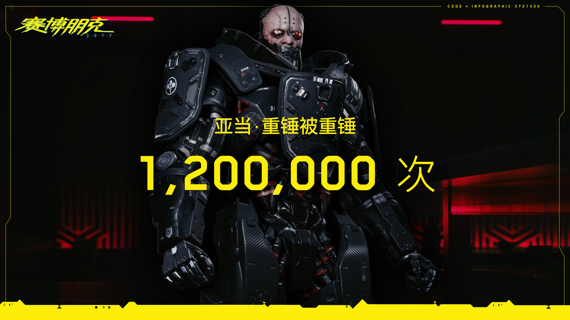 “今天您锤了嘛?” 来自《赛博朋克2077》的官方数据,亚当·重锤在游戏中被玩家重锤超过120万次。